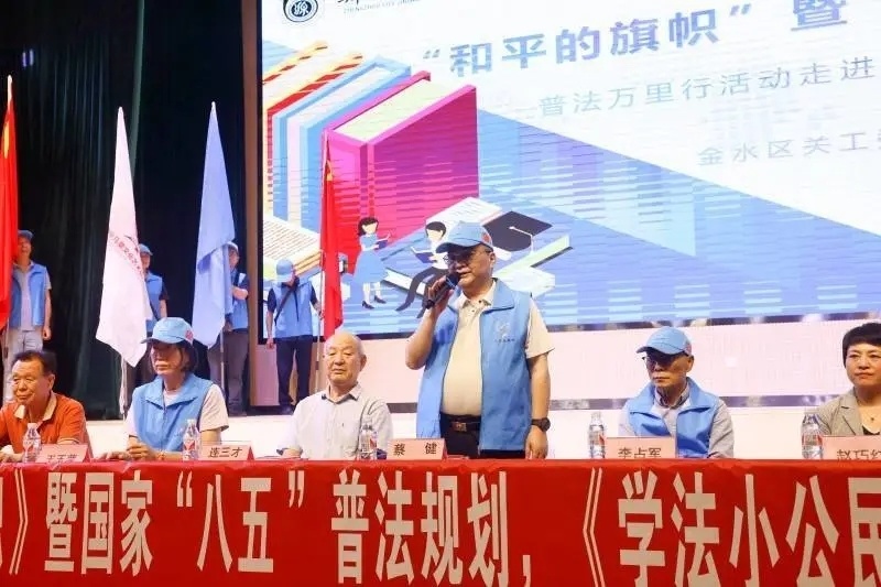 5 月 15 日,由中华儿童文化艺术促进会组织的 2024 年度“和平的旗帜”暨国家“八五”普法规划《学法小公民》捐书普法宣传万里行公益活动走进河南。当日,万里行团队先后在郑州师范学院第二附属小学、郑州市金水区文源小学开展普法宣传和图书捐赠活动。次日,此行全体成员瞻仰了河南省革命先烈纪念馆。