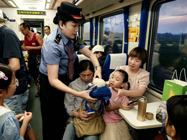 2024-8-9 18:59 中生网核心提示: 合肥客运段北京一车队“女子三八红旗包乘组”列车长刘永慧为了更好的为旅客服务,开展了各种便民服务措施,为繁忙紧张的暑运工作增添了一份温暖的色彩。