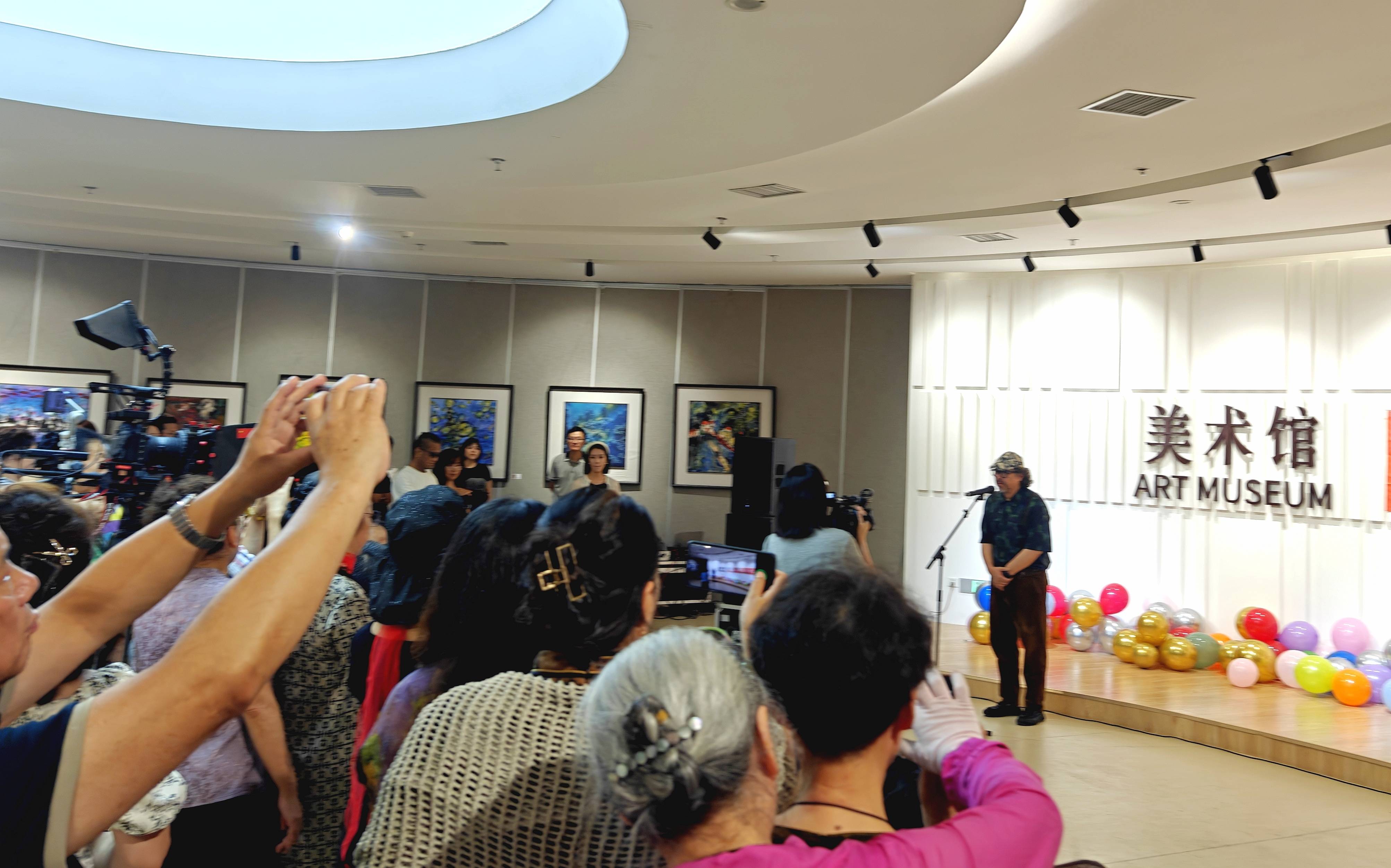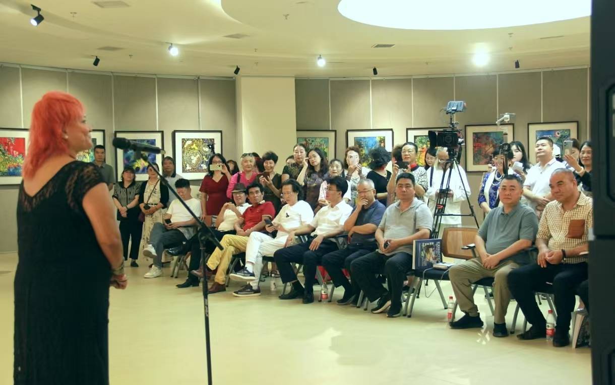 左锋义先生发表了诚挚的欢迎致辞,清华大学马子骞对左锋义先生创作的彩墨绘画给予解读并就其未来寄予厚望。荣海兰董事长特意从欧洲赶来参加会展,讲话中表达了对左锋义先生彩墨绘画的喜爱,并20万美金收藏左锋义一幅作品《The Russo Ukrainian War》。