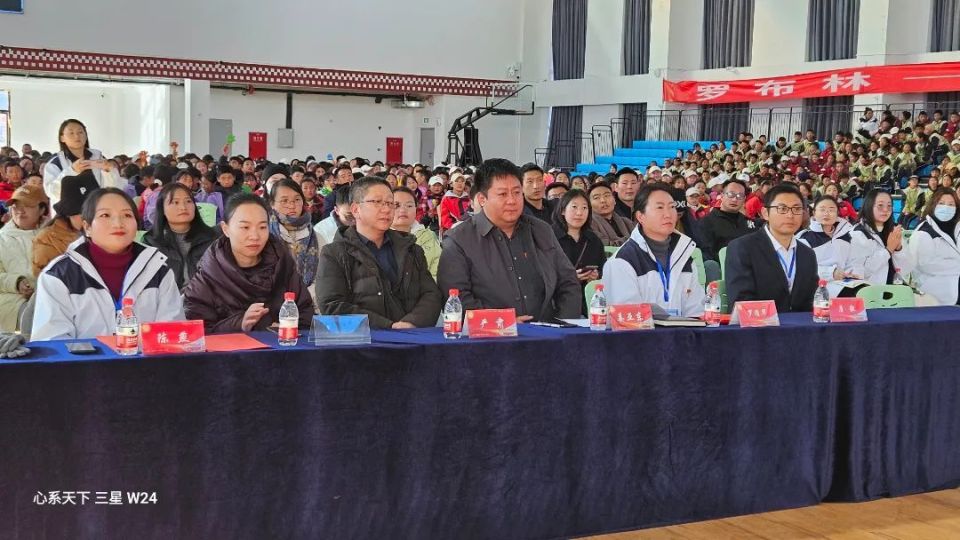 12月11日下午16时“中粮阳光奖学金”发放仪式在我校罗布林室内篮球馆隆重举行!甘孜县人民政府副县长严肃,中粮集团挂职甘孜县副县长姜亚东,甘孜县教体局教育工委书记吴娟,我校党支部书记、校长罗清华,党支部副书记、副校长陈燕,副校长唐毅,全体师生及部分家长代表出席活动。