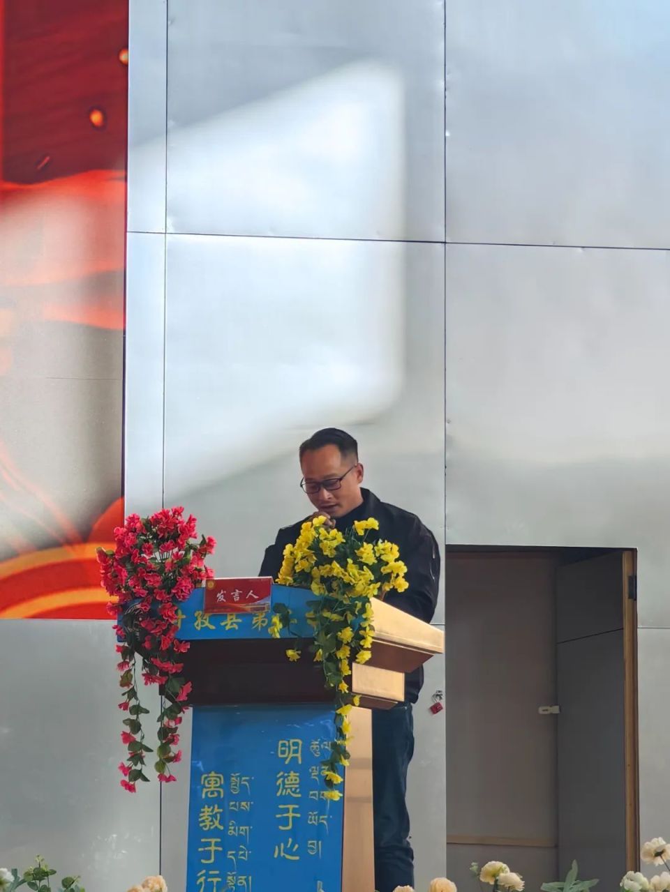 中粮集团挂职甘孜县副县长姜亚东致辞。他表示中粮集团一直秉持着积极履行社会责任的理念,关注教育事业的发展,注重教育领域的投入。通过设立奖学金,中粮集团希望能够激励更多的学生努力学习,回报社会。他鼓励全体同学珍惜机会,勤奋学习,不断进步,成为国家的栋梁之才。