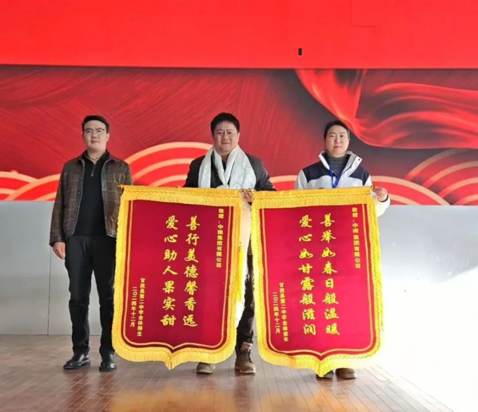 中粮集团作为国内知名企业,一直秉持着积极履行社会责任的理念,长期以来关注教育事业的发展,设立中粮奖学金更是体现了其强烈的社会责任感和对甘孜青年学子的殷切期望。为感恩中粮集团对学校教育事业的支持以及对同学们的关爱,校党支部书记、校长罗清华和家长代表扎西泽措为中粮集团赠送锦旗。