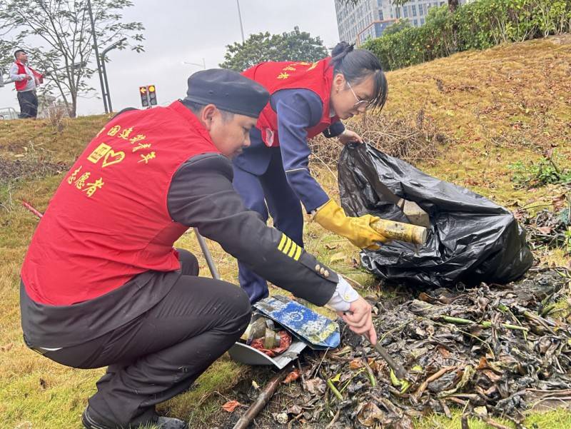 中建四局城市服务公司广州项目部开展“传承雷锋精神 文明志愿同行”环境整治美家园行动,志愿者们身着“红马甲”,拿着扫帚、铲子、垃圾袋等劳动工具,清理散落的塑料泡沫,橡胶、烟头等垃圾,用实际行动守护环境健康,共建绿色家园。