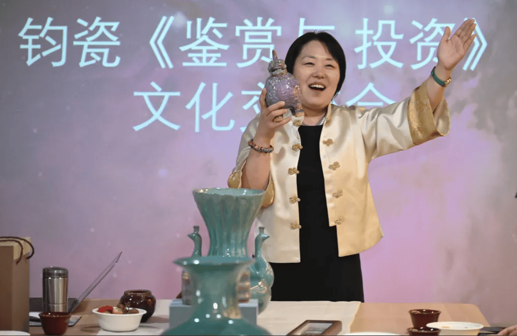活动当天,中国传统文化促进会非物质文化遗产工作委员会执行主任、国家级非物质文化遗产钧瓷文化传承人张晓丽首先为大家分享了钧瓷之美。她分别从钧瓷历史价值、文化价值、艺术价值、收藏价值、健康价值、烧制技艺、艺术鉴赏七个方面来介绍了钧瓷。