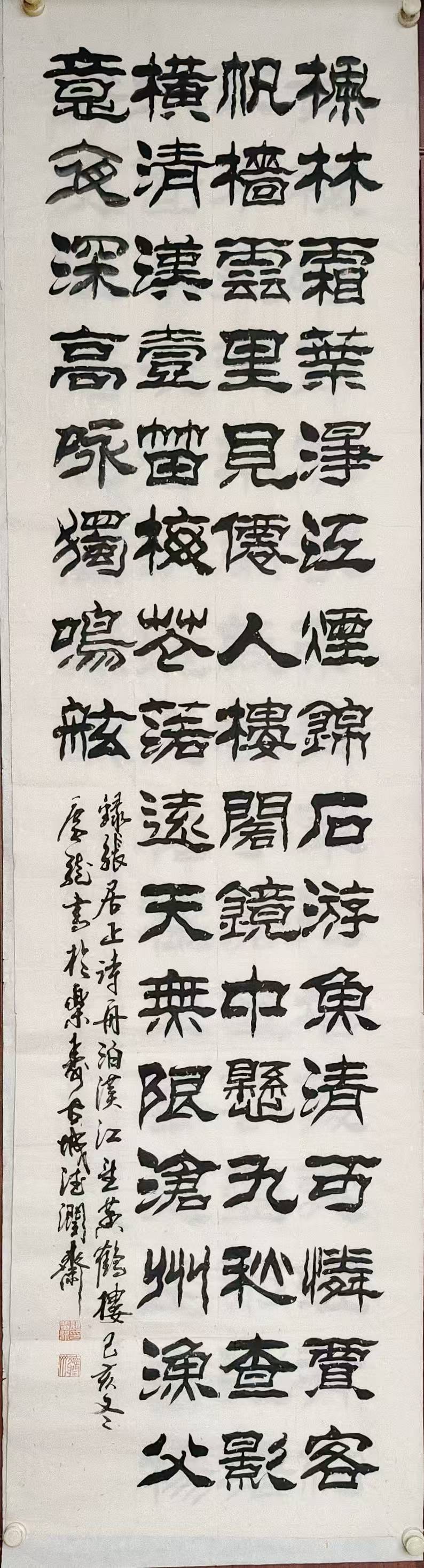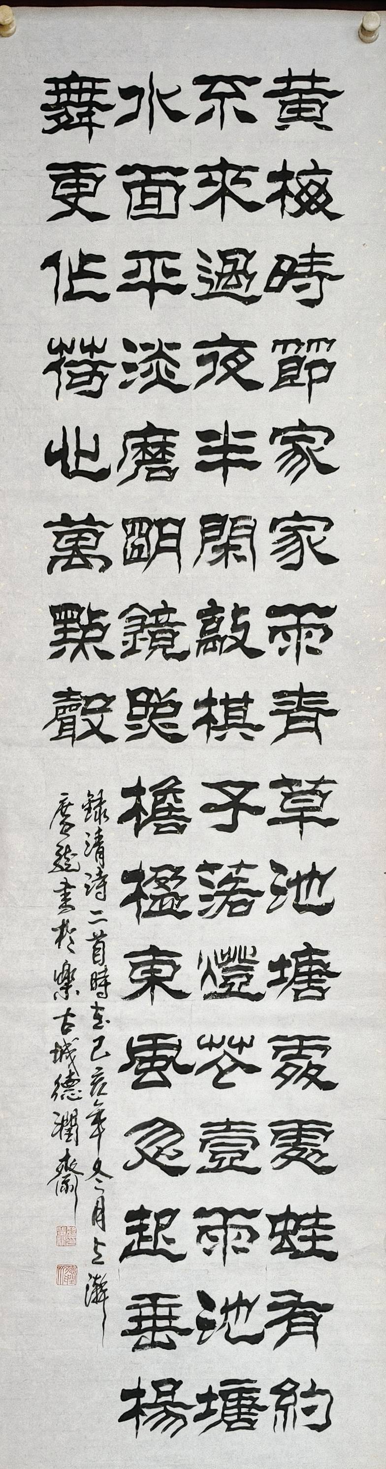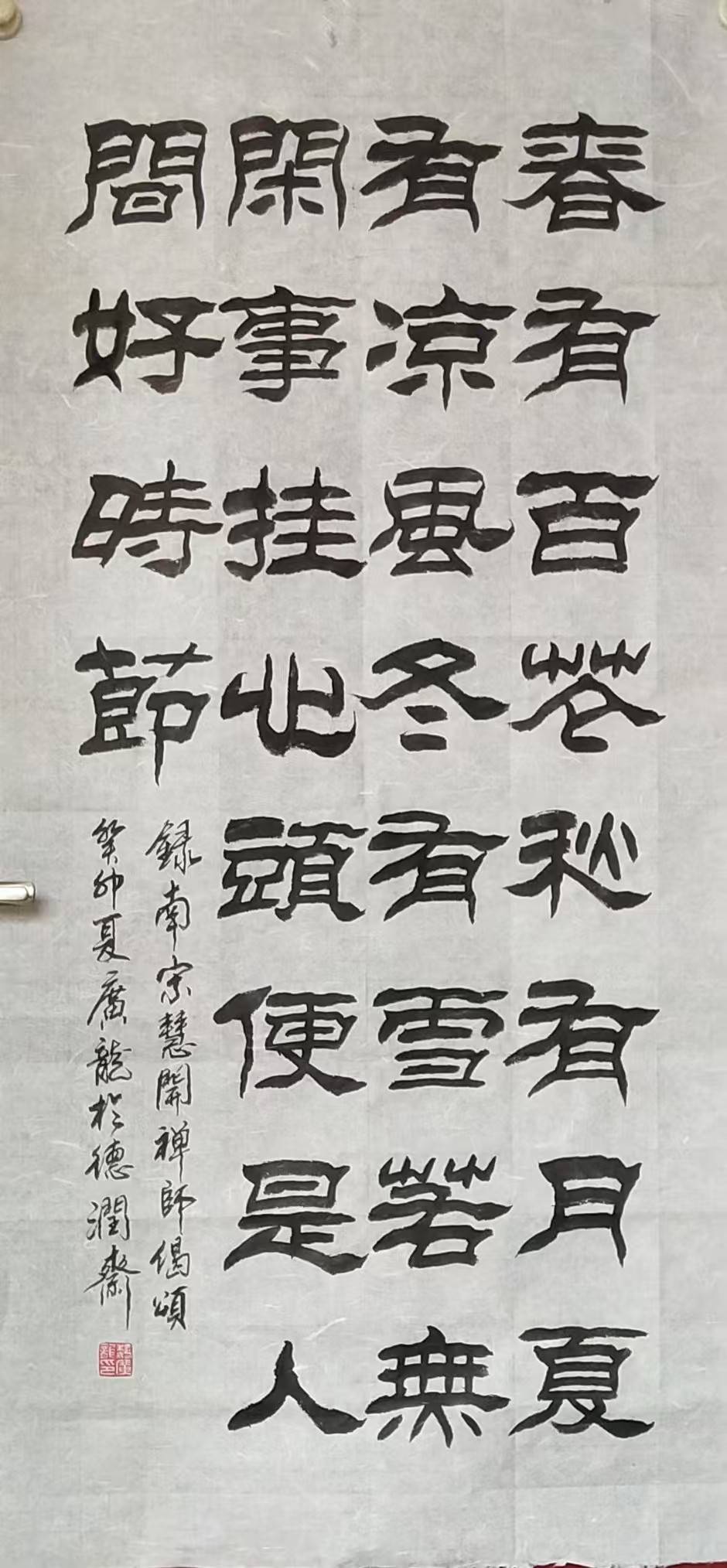 魏广龙的艺术远不止于本土传承。其隶书《曹全碑》临本在意大利米兰艺术馆展出时,西方观众惊叹于东方艺术的时空纵深——笔势的起承转合间,既保持着汉代碑刻的金石气韵,又跃动着现代美学的空间意识。这种突破地域界限的艺术表达,印证了黄宾虹"守常达变"的艺术真谛。