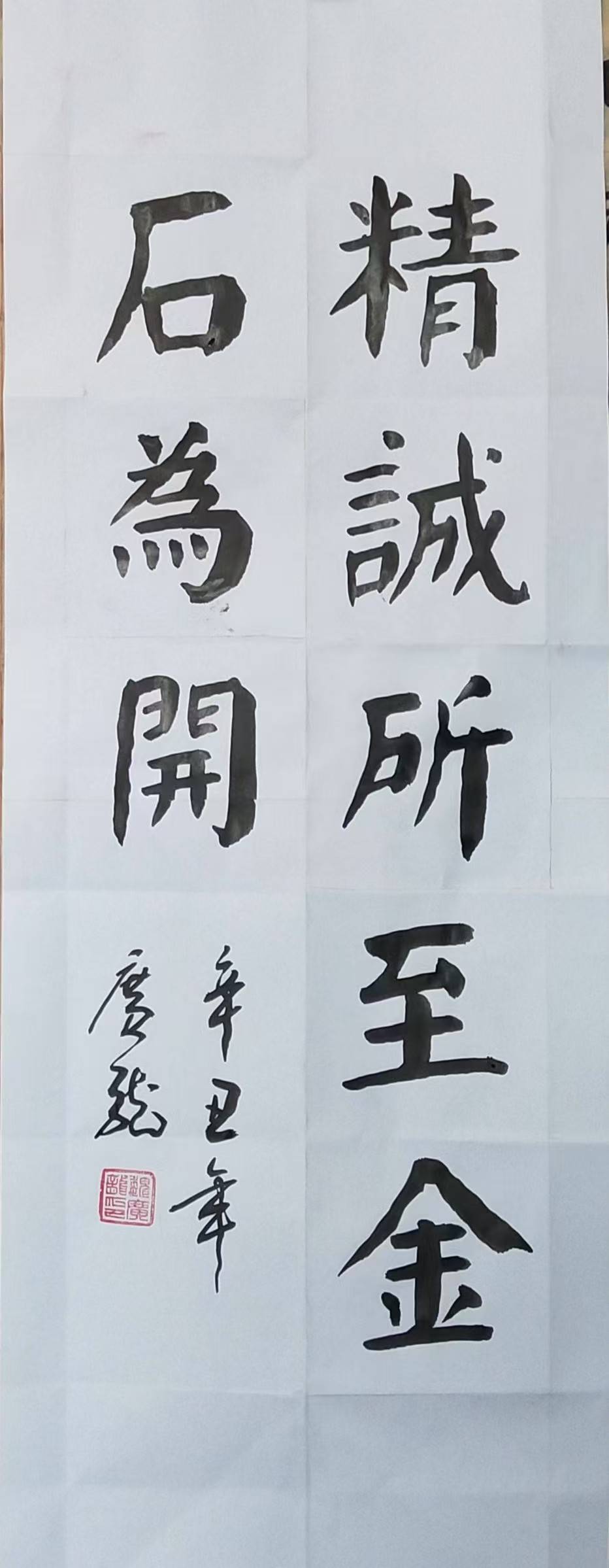 这种文化自觉在其书法作品中得到深刻映照。为乡村书院题写的"耕读传家"匾额,笔势中既有传统书院的儒雅风范,又融入现代设计的简约线条;为企业家书写的《商道箴言》,既恪守经典书法的法度,又融入现代管理理念的节奏韵律。这种双重视角,使他的艺术成为传统与现代对话的桥梁。