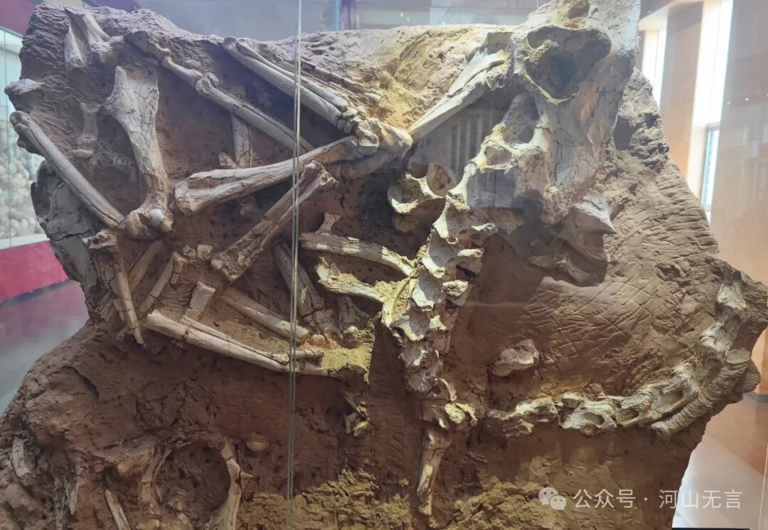 临夏州和政县古生物化石博物馆内保存原生埋藏状态的古生物化石巨型岩块