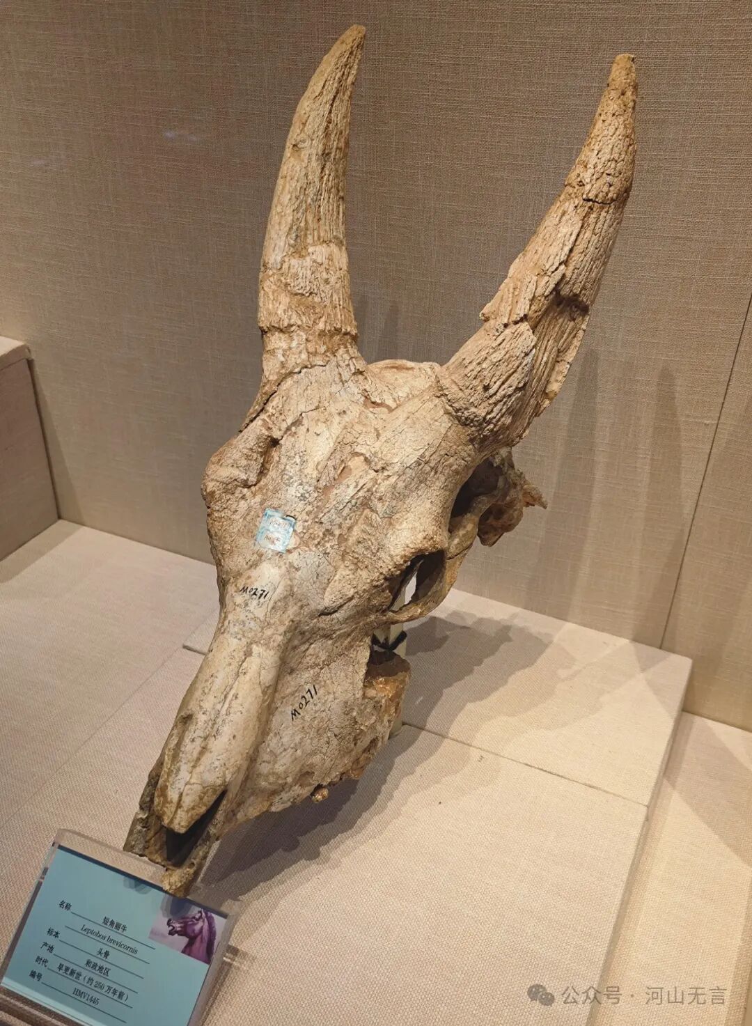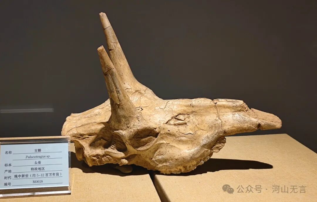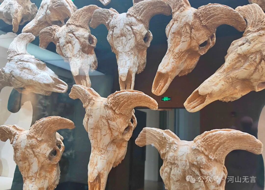 三趾马动物群-和政羊头骨化石。大量的和政羊化石表明,它和大唇犀同样是三趾马动物群中的最大种群之一。