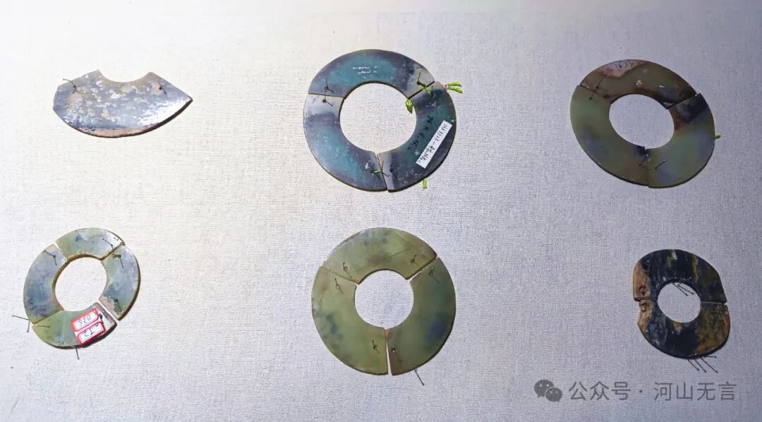 齐家文化的玉器,由上至下为玉佩、玉琮、玉璧、玉环与玉玦。玉器制作的高度发展似乎也和青铜时代相伴随。