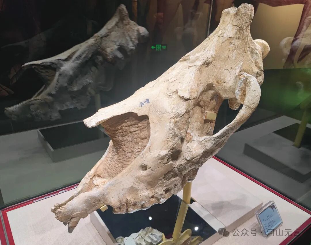 三趾马动物群-大唇犀头骨化石。桦林埋藏遗址中,大唇犀的个体数量最多,仅头骨就有数百个,且成年个体明显多于老年个体,可能是突发性事件引起的灾害性死亡。