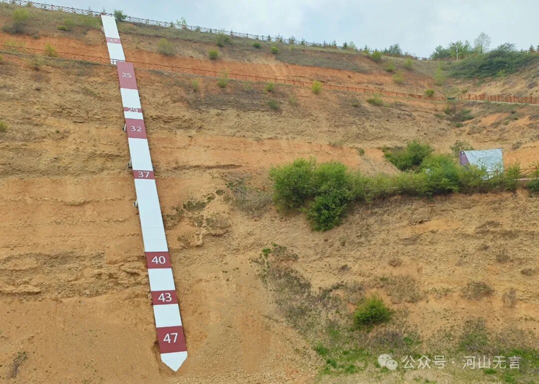 临夏州和政县桦林古生物化石埋藏原址馆外,产三趾马动物群化石的新近系中新统柳树组地层剖面。