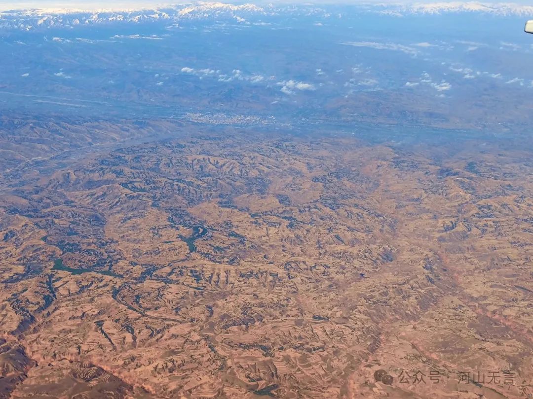 陇中黄土高原的临夏盆地,远处可见河流切割黄土高原形成的川地。