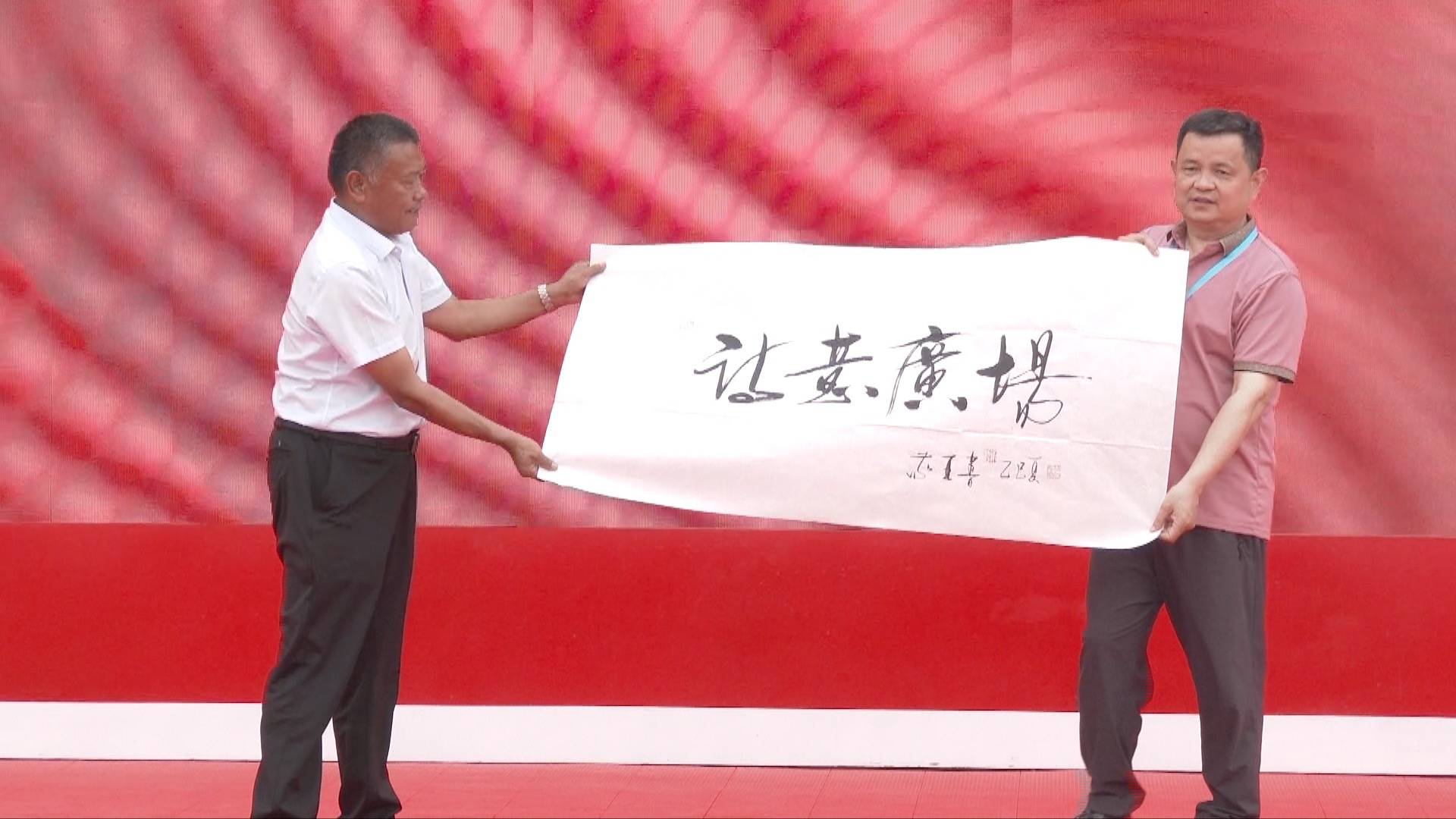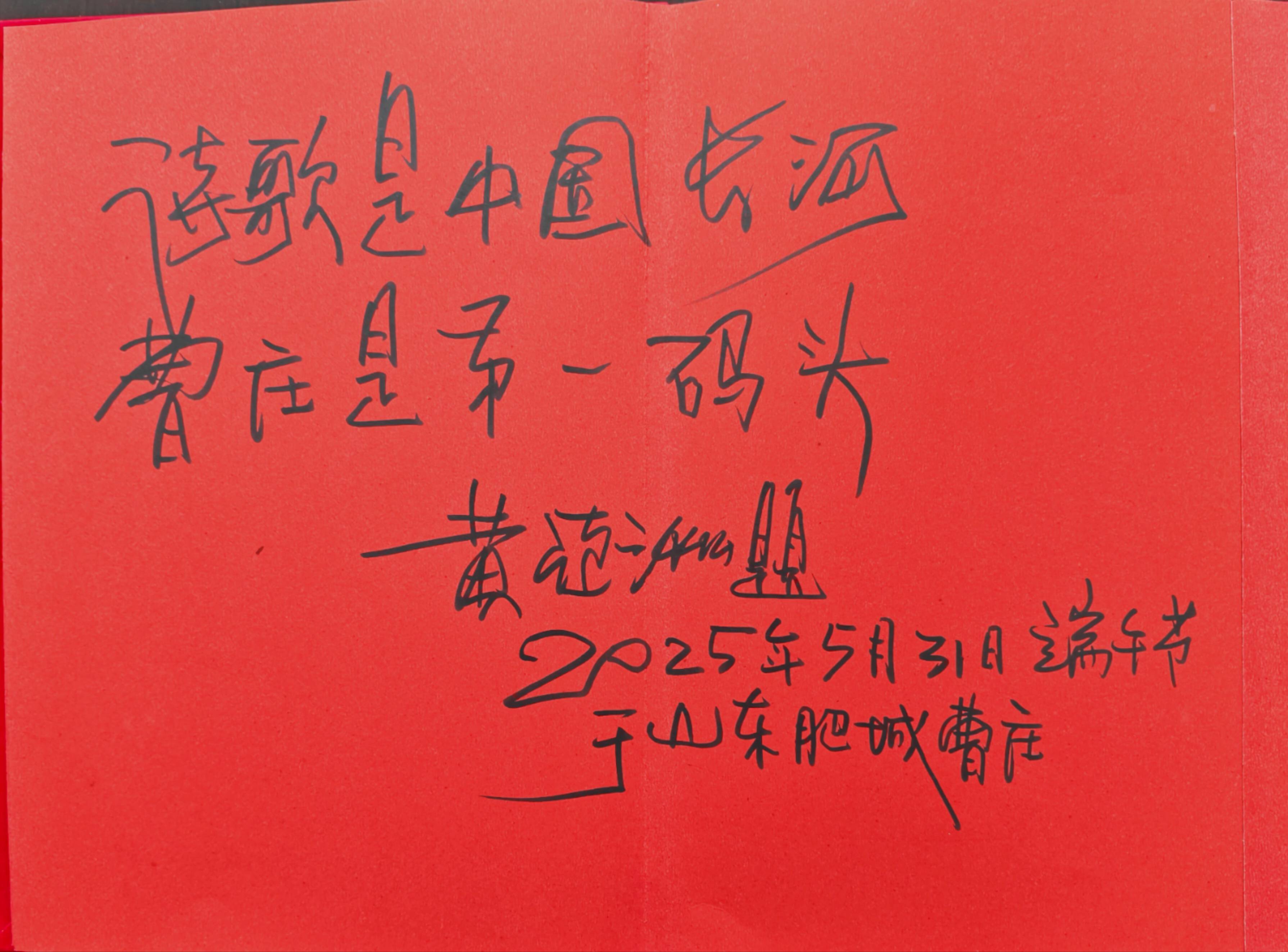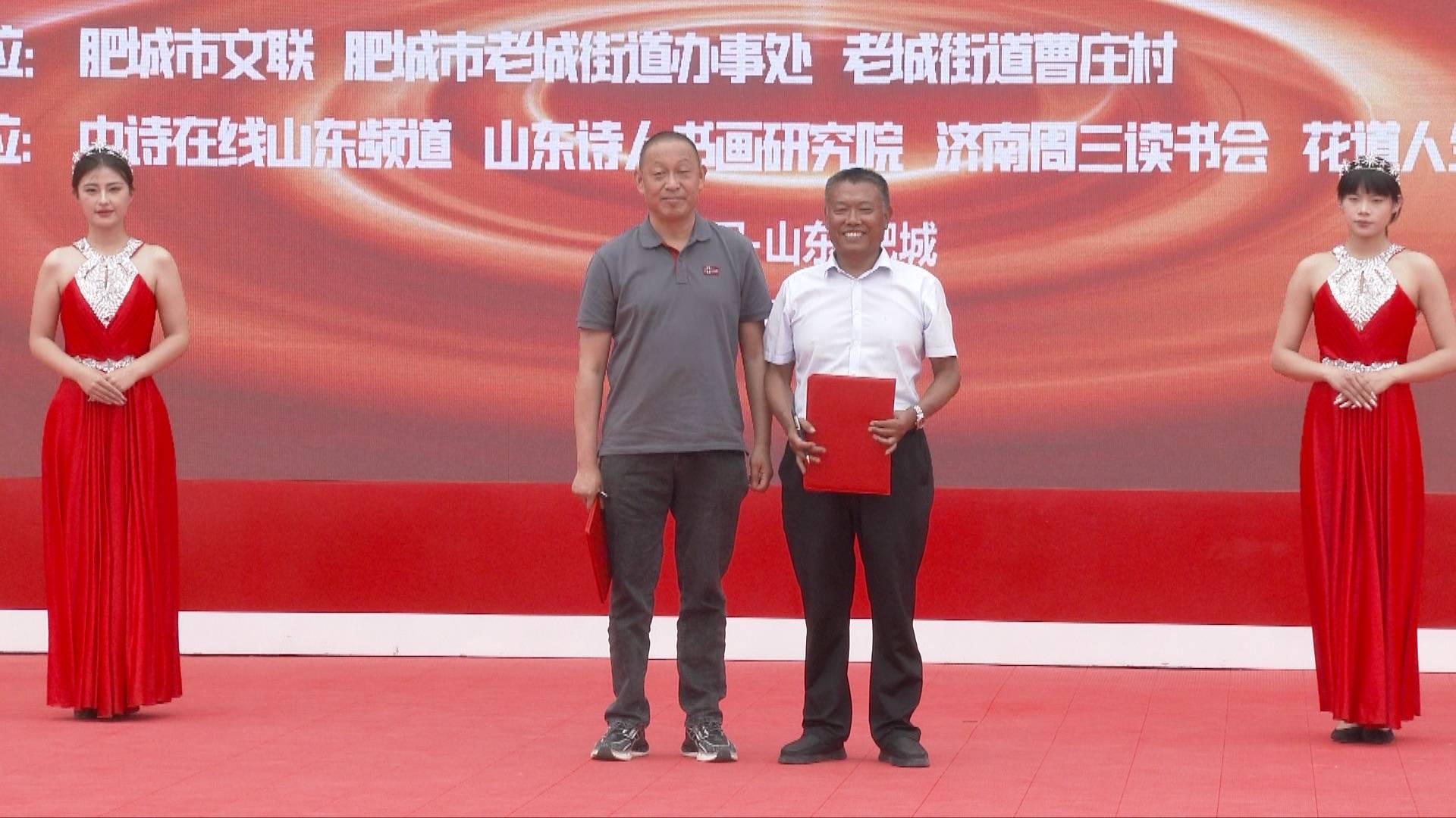 当肥城市舞蹈家协会的少儿们以《遇见繁花》的舞姿演绎文字的天真,当周炜绮用肢体语言在《世界赠与我的》中诠释诗歌与世界的对话,曹庄的老墙仿佛成为流动的诗笺。山东快书《武松打虎》让古典诗词与传统曲艺碰撞出火花,杜尊平的《在那桃花盛开的地方》则唱响肥城 “世界最大桃园” 的诗意图景。更动人的是书画赠送环节:著名诗人徐敬亚题写的 “诗意广场” 书法作品、中诗网总编周占林的书法作品与山东诗人书画研究院高泽远、赵东平两位副院长的书画作品一起落地曹庄,让笔墨丹青与乡土文脉完成跨时空握手。