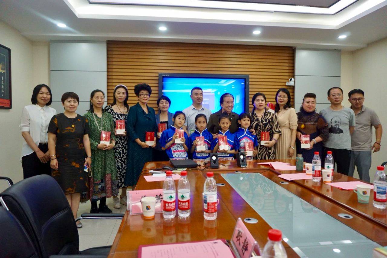 范崇嬿主席现场赠送了她个人著作。家庭教育专家、资深媒体人王好凤向学校捐赠了《北京中轴线日历》。此日历完整呈现北京中轴线15处遗产点,通过儿童画、摄影及篆刻等艺术形式展现历史风貌,可作为学生了解古都文化的可视化教材。