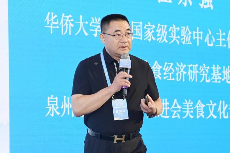 华侨大学旅游国家级实验中心主任、教授、硕导,泉州美食经济研究基地主任,泉州市美食产业促进会美食文化专业委员会主任汪京强作了《泉州海丝美食发展》的主题分享,从历史渊源——海丝起点与饮食基因、食材革命——异域风味的本土新生、华侨纽带——双向流动的文化密码、全球舞台——从联合国到世界餐桌、未来图景——海丝美食的出海新航路五个方面展示了泉州海丝美食是文化韵味的凝练、是烟火人间的写照。