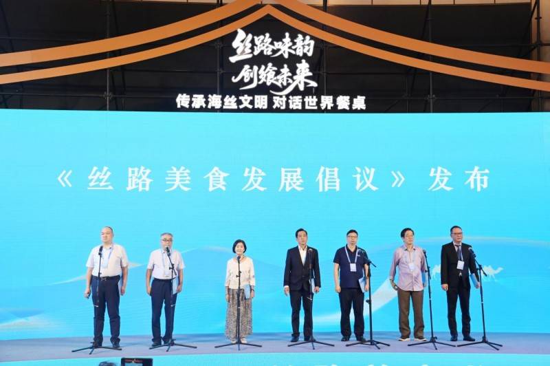 同时,《丝路美食发展倡议》重磅发布。马来西亚雪隆姑苏慎忠行餐饮业公会会长张锦辉,泰国老山东餐饮集团董事长尚延明,斯里兰卡华侨华人联合会秘书长黄永明,世界中餐业联合会饮食文化专家工作委员会副主席、中国陕菜网创始人、陕西省面食产业发展促进会会长刘晓钟,世界中餐业联合会副秘书长、香港餐饮协会副主席李晓莉,三亚市海鲜餐饮协会执行会长汪裴,泉州市美食产业促进会监事长、福建中禾食品科技有限责任公司董事长詹游霖共同号召并希望在深化文化传承与保护、推动创新融合发展、保障食材可持续供应、促进人才培养与交流、加强品牌建设与推广、拓展国际合作与交流等方面汇聚各界力量,共绘丝路美食的繁荣图景,让千年丝路的袅袅炊烟,化作滋养世界的永恒盛宴,让人类文明的多样之美,在共享的餐桌上熠熠生辉。