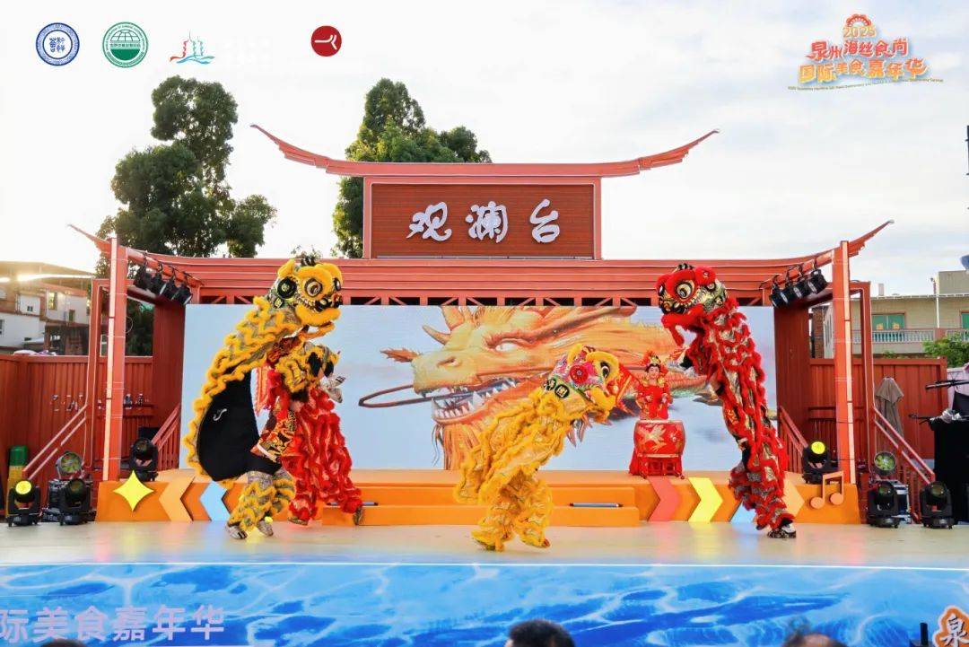 在8月15日的开幕仪式上,伴随着热闹欢乐的锣鼓声声,醒狮灵动跃起,展现出泉州传统非遗文化的活力与魅力,瞬间点燃现场气氛。与会领导和嘉宾共同转动手中的船舵,缓缓打开象征着美食与文化交融的“海丝之门”,启幕美食嘉年华的风味之旅。