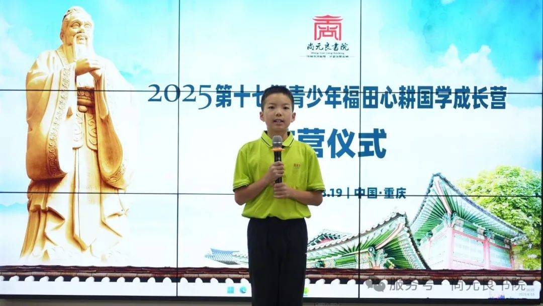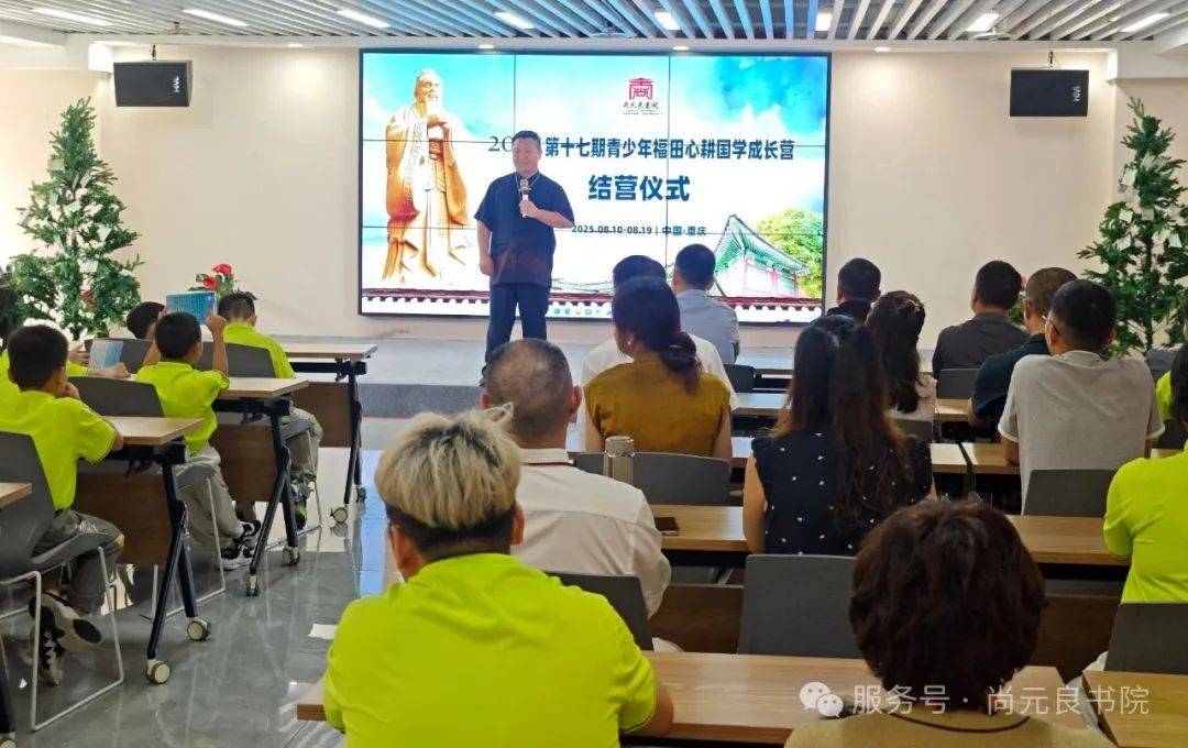 2025年8月19日午后,暑气渐褪,尚元良书院传统文化教育(重庆)基地内,竹影摇曳,清韵悠然。历经十日圣贤智慧的浸润,第17期青少年“福田心耕”国学成长夏令营,于此迎来了庄严而温情的结营典礼。一场跨越时空的文化传承,在少年们清澈的诵读声与家长们欣慰的目光中,圆满礼成。
