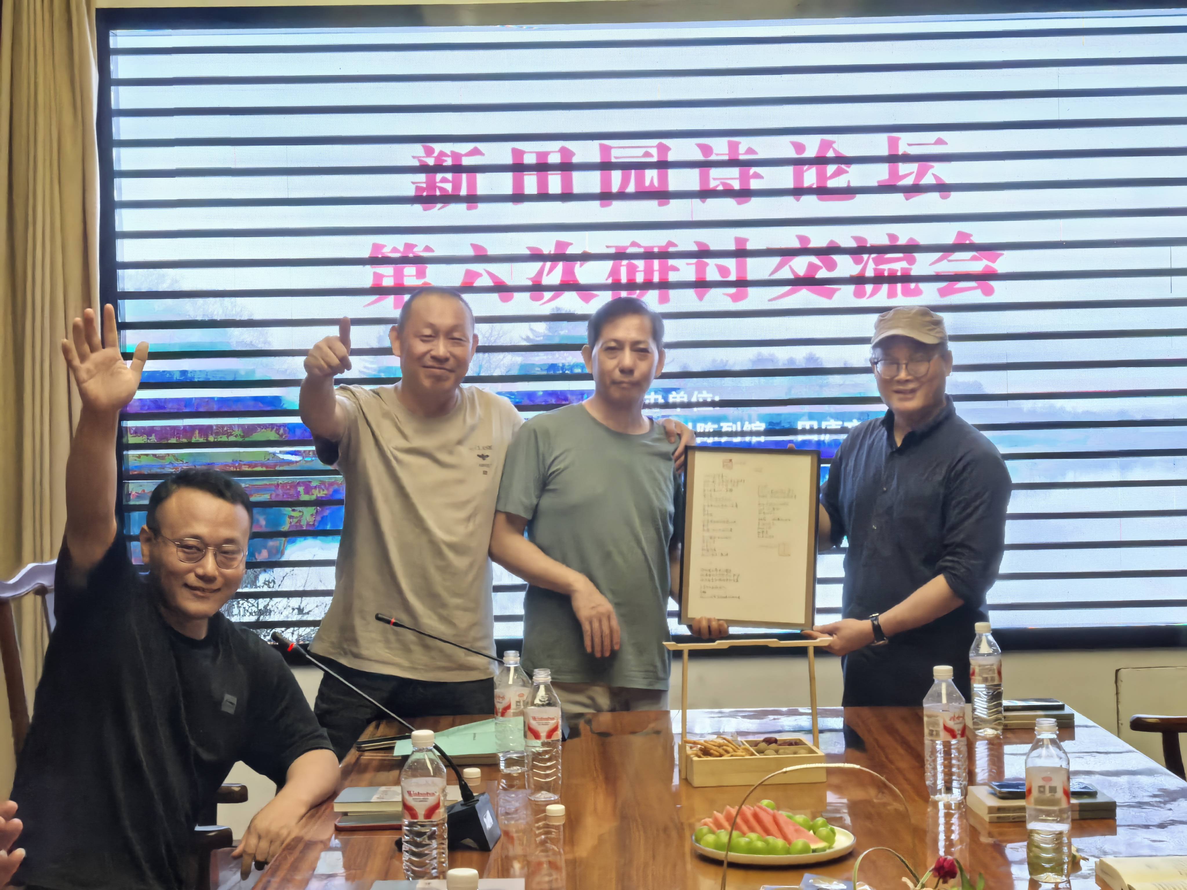 安海茵、潘维、张志刚、李强、吕煊、述川、邓洪、沈文军、吴撇、子川、孙志翰、王灵朦、老庙等诗人分享了自己对“新田园诗”的理解,有的还以朗诵、分享新作的形式,为本次研讨会增添了亮色。会上,著名诗人潘维给田庐文创园和中国当代诗人档案资料陈列馆,分别捐赠了自己的手稿。