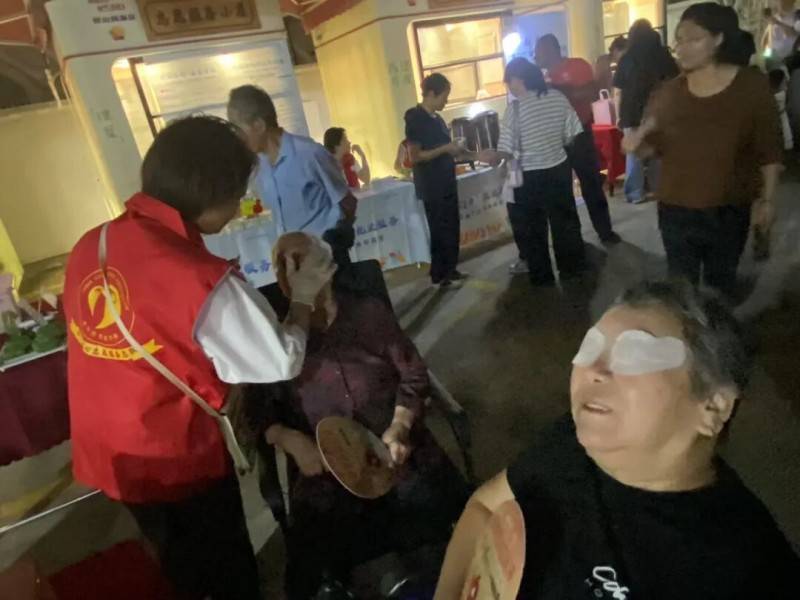 眼部护理区备受青睐。专业志愿者为居民提供细致的眼部检查和护理服务,体验过的居民连连称赞“比去店里还舒服”。一位连续两天都来体验的老奶奶笑着说:“这个产品不错,我这老眼睛感觉清爽多了!”