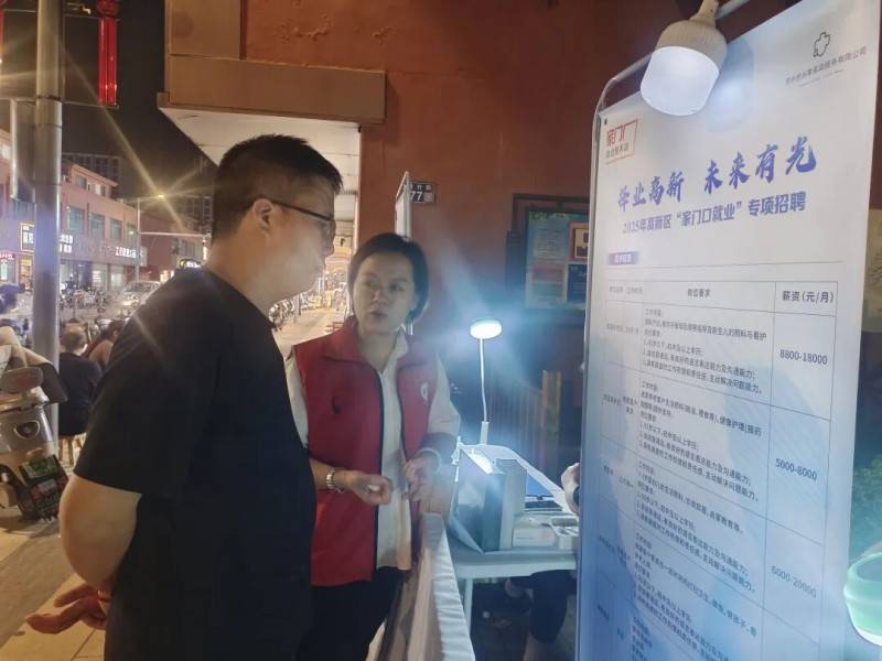 就业咨询区人头攒动。“乐业高新,未来有光”招聘展板前,不少居民认真记录着岗位信息。志愿者耐心解答各种问题,帮助居民匹配适合的工作岗位。