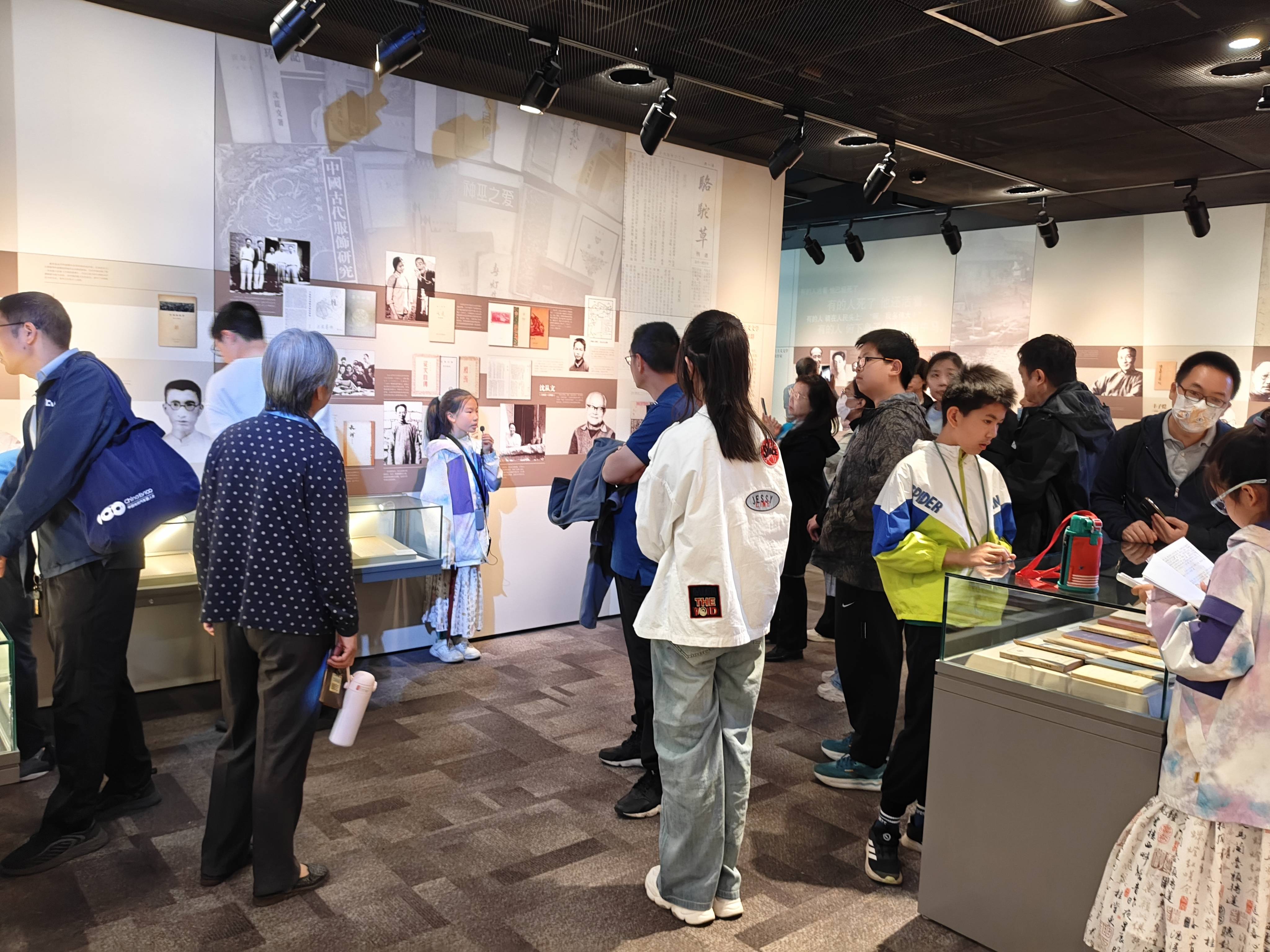 这两个小姑娘并非普通游客,而是文学馆的周末志愿者。每逢周末与节假日,她们都会放弃休息时间,提前备好讲解词,穿梭在展厅里为参观者讲述展品背后的故事。身旁的成人中,一位是她们的母亲,始终默默陪伴着孩子的“文学志愿路”,另外两位则是专程来听她们讲解的观众。