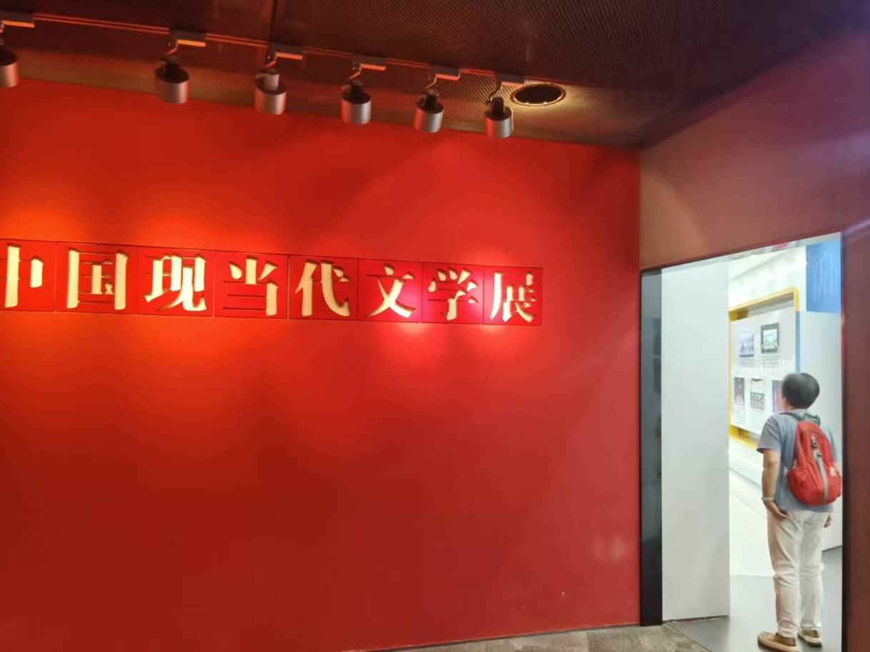 在此举办青年作家王洁报告文学《过秦岭》研讨会,恰是让文学创作与文学传承完成了一场温柔的对话。研讨会落幕时,闭馆的铃声已近在耳畔。我匆匆赶往一层中国现当代文学展,想再与这座“文学殿堂”多待片刻,工作人员见状,笑着默许了这“两分钟的请求”。未曾想,这短暂的停留,竟让一场奇妙的缘分悄然降临。