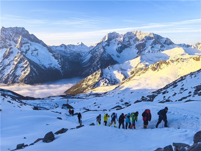 依托三奥雪山资源,户外运动产业异军突起。定位“人生第一座雪山”,已开发成熟登山线路,2025年4月常态化运营以来接待登山客2.4万人次。创新“景区+专业机构”模式,打造“高山向导第一村”,全县210名向导参与其中,形成“户外运动+冰雪经济+民俗旅游”产业生态,实现雪山变“金山”。