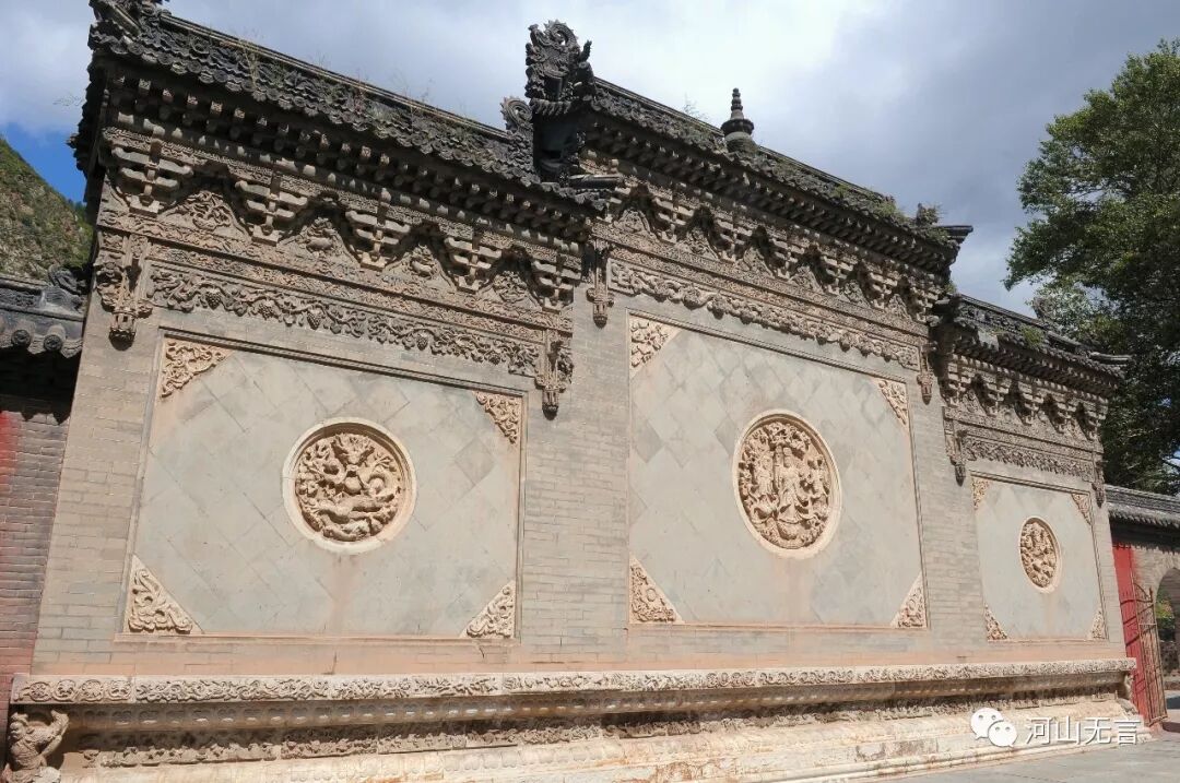 五台山普化寺大殿前的影壁,民国时期建,是五台山最长的影壁,尤以精美的砖石合雕著称。范晓摄影