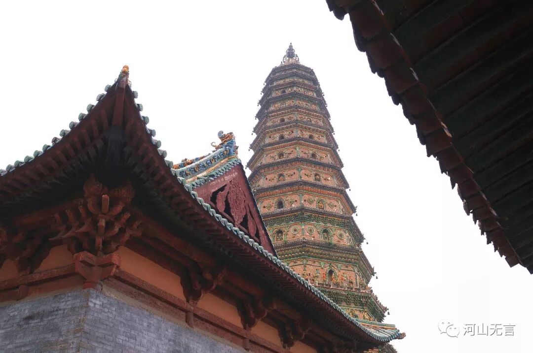 在对西太行太岳山的考察中,我还去了山西洪洞县境内的广胜寺,广胜寺分上下两寺,下寺位于太岳山麓,上寺位于太岳山西坡由石灰岩构成的山峦上,登临广胜寺上寺,听疾风林涛,览太岳雄峰、望汾河平原,让人心旷神怡。广胜寺最引人注目的,是挺立于上寺的琉璃佛塔—飞虹塔。该塔建于明代嘉靖六年(1527年),高47.31米,整个塔身用黄、绿、蓝三彩琉璃装饰,有斗拱、倚柱、佛像、菩萨、花卉、鸟兽等各种琉璃构件和图案,造型精巧,色泽鲜丽,与介休后土庙同为古代琉璃建筑艺术的代表作,只不过一用于道教,一用于佛教。而且由于非凡的建筑结构,在清康熙三十四年(1695年)的临汾盆地八级地震中,飞虹塔安然无恙。