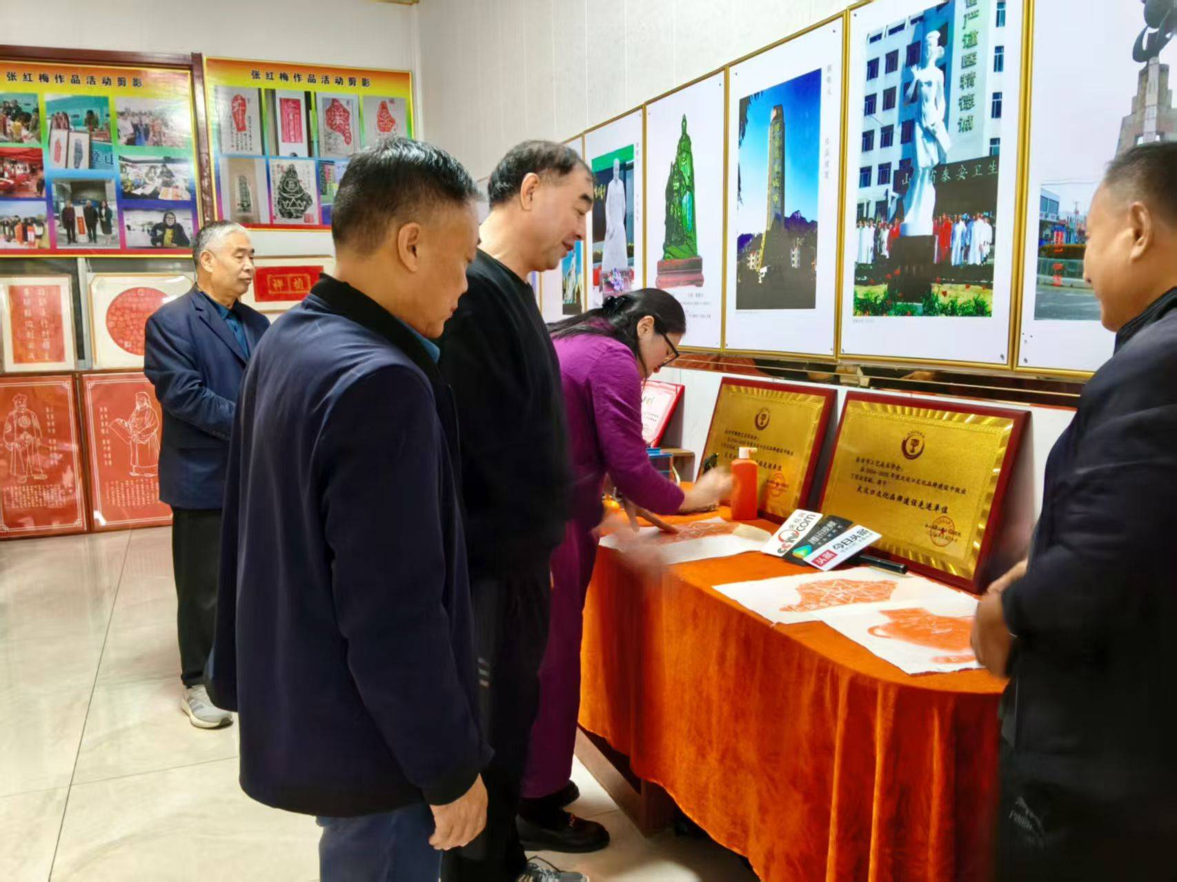 在红梅拓片非遗馆,馆长张红梅现场展示技艺,5分钟内将大汶口文化“日月纹”“网纹”等刻符拓印在宣纸上,让团队直观感受“非遗+家文化”的传承路径。中国书协会员宁延文将个人创作“福蕴华堂”等书法作品赠予文化馆群。