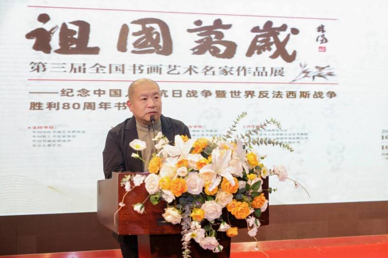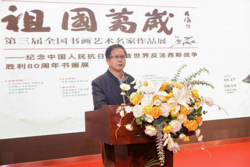 随着北京市文联原党委书记沈强以铿锵有力的声音宣布:“‘祖国万岁’第三届全国书画艺术名家作品展——纪念中国人民抗日战争暨世界反法西斯战争胜利80周年书画展开幕!”现场掌声雷动,气氛达到高潮。