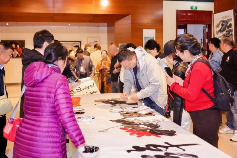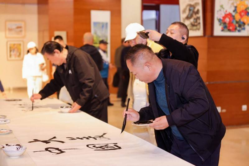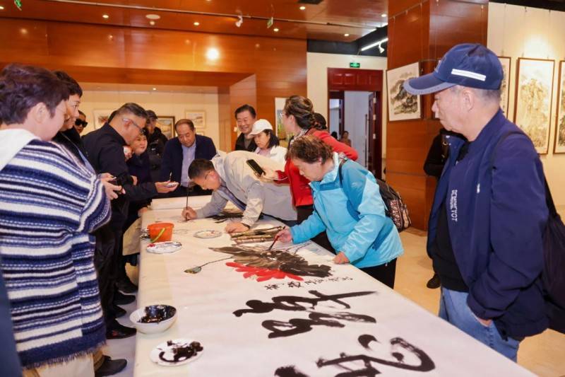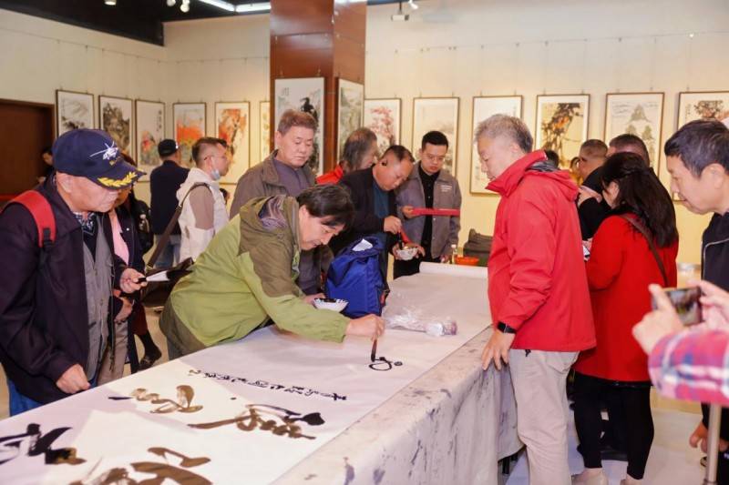 随着“开幕式圆满礼成”的宣布,主席台嘉宾与书画名家移步至笔会区。大家挥毫泼墨、以笔寄情,书写蕴含家国情怀的豪迈诗句,描绘展现山河壮丽的锦绣画卷,在笔墨流转间为本次展览留下了珍贵的开篇印记,也为这场文化盛宴增添了浓墨重彩的一笔。
