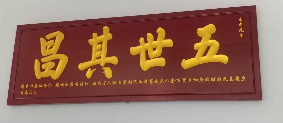 第二是今年6月22日,两方复刻的“五世其昌”“德重相邻”老匾落成揭幕,重现家族百年荣光。这两块匾额原是民国初年县府与乡邻所赠,后因历史变迁及“文革”损毁,经族人多方查证、邀传统匠人用优质木材与鎏金工艺复刻,终重悬于王氏老宅。王氏家族自明代迁居东牛家务村,以“耕读传家、德睦乡里”为训,曾因和睦兴旺获赠两匾。此次复刻历时数月,族人齐心,正如家族理事会所说,复刻的不只是匾额,更是精神传承。揭幕仪式上,长辈勉励后辈以匾为铭,传承家风。老匾重现,既是王家大事,更是中华传统家风文化的生动传承,愿王氏一脉将其精神融入血脉,世代绵延。