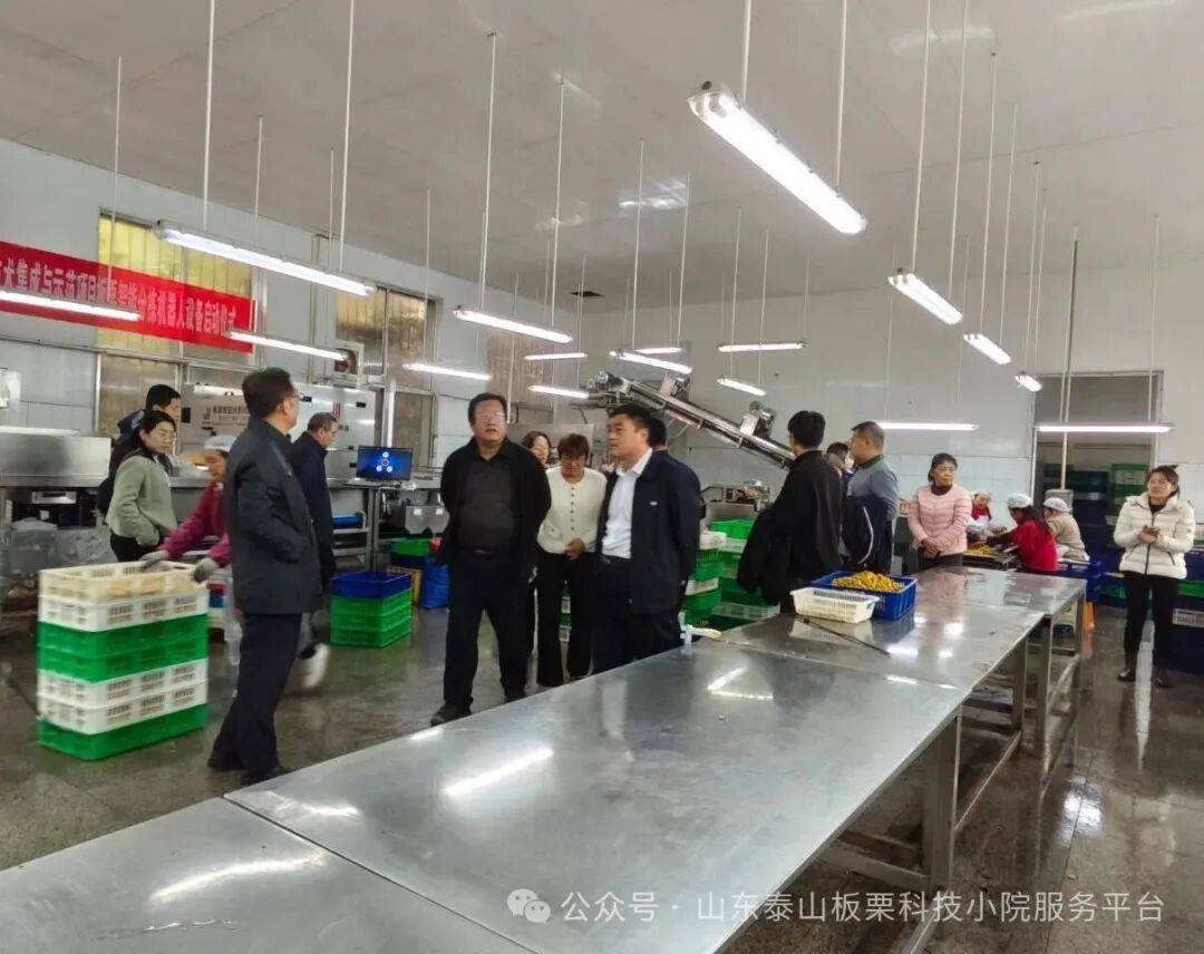 在协会会员单位泰安贵友泰山板栗经贸有限公司的加工厂,调研组参观了自动化剥米流水线、第六代AI机器人精选栗米设施,从中了解到数字化生产,不仅日产提升至16吨,减少15个人工,更让即食栗仁保持原口感的同时保障了食品安全和全年供应。