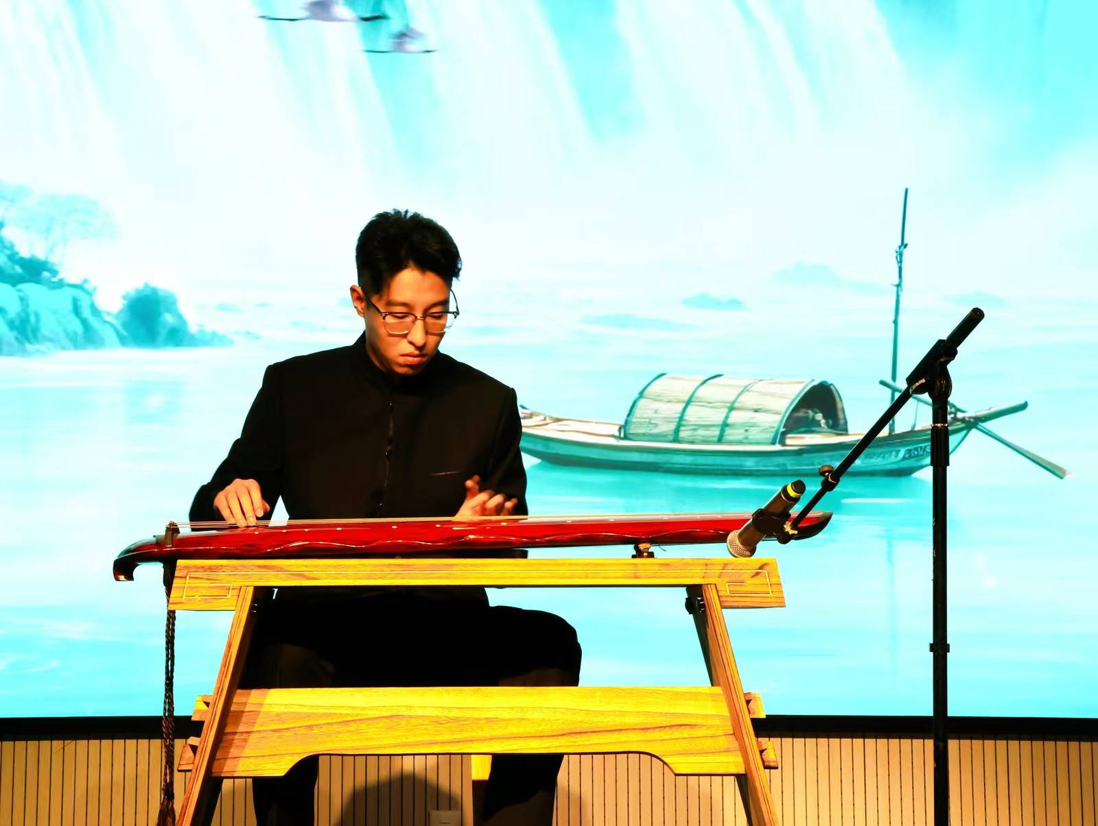 第二篇章“琴茶润古今 戏韵流芳远” 则展现了非遗温婉典雅的一面。爱谷雨国学经典朗诵,程斯盈、宋思锐、张昕泽的古琴齐奏《关山月带过醉谪仙》,王晶的古琴演奏与谢美霞的唐密茶道同步演绎《忆故人》,以及孙宇龙的古琴演奏《流水》,让观众沉浸在琴茶共生的文化意境中。