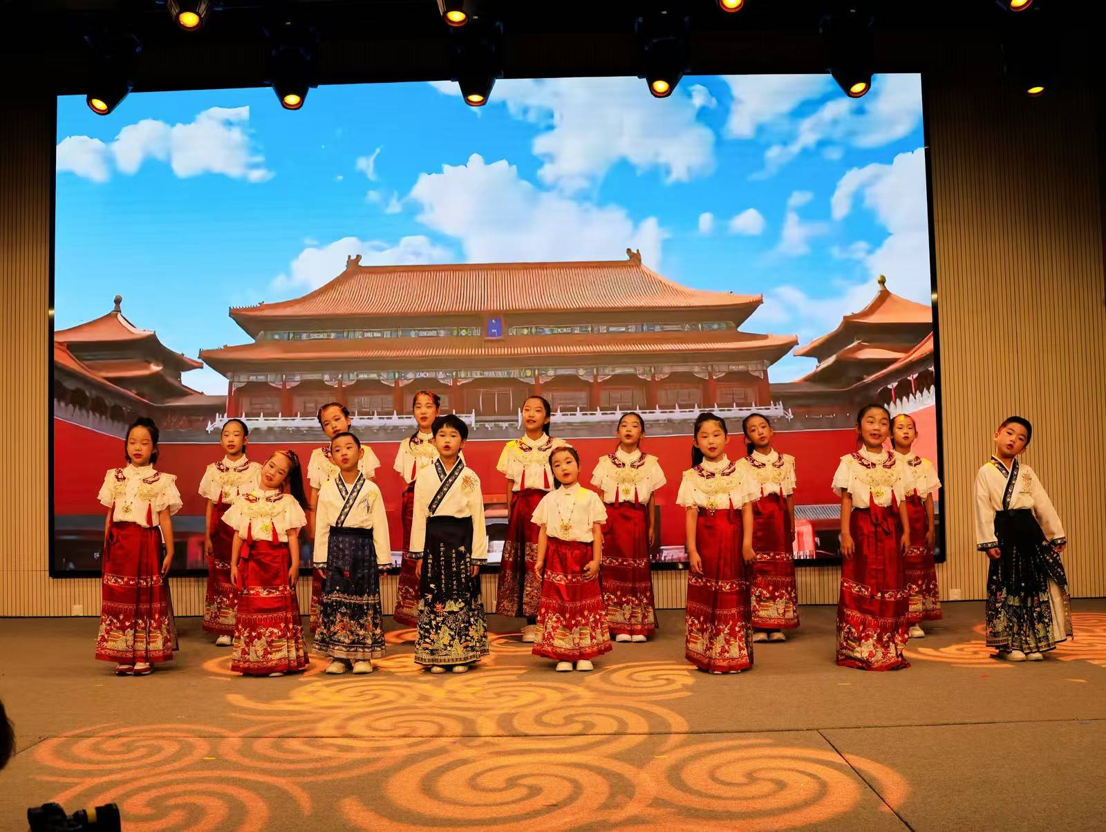昌平区德方育华学校的中华雅乐舞《小雅·鹿鸣》则将观众带回了千年前的西周礼乐现场。学生们身着传统服饰,步态从容,抬手间似有清风拂过,屈膝时宛若明月入怀。
