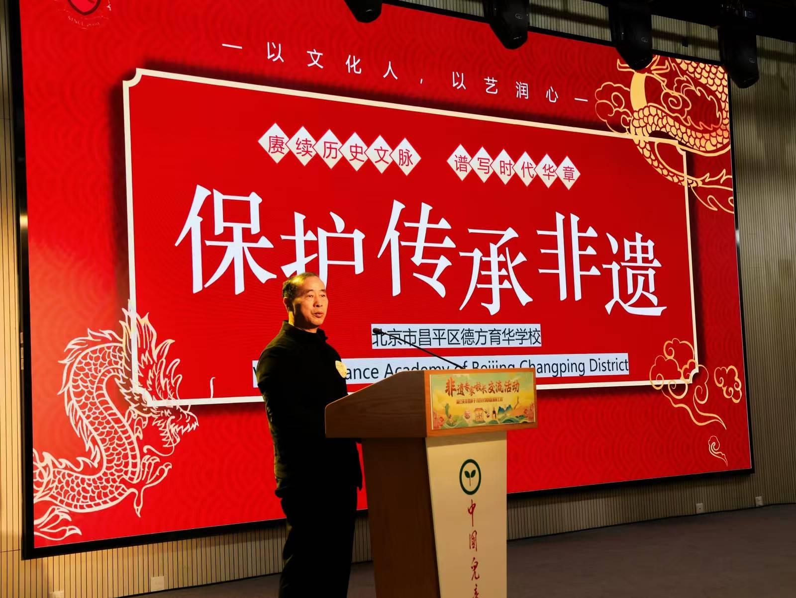 昌平区德方育华学校校长秦继杰分享了学校“赓续历史文脉,谱写时代华章”的非遗传承理念。该校通过非遗中华雅乐舞等课程,让学生亲身参与传统文化实践。