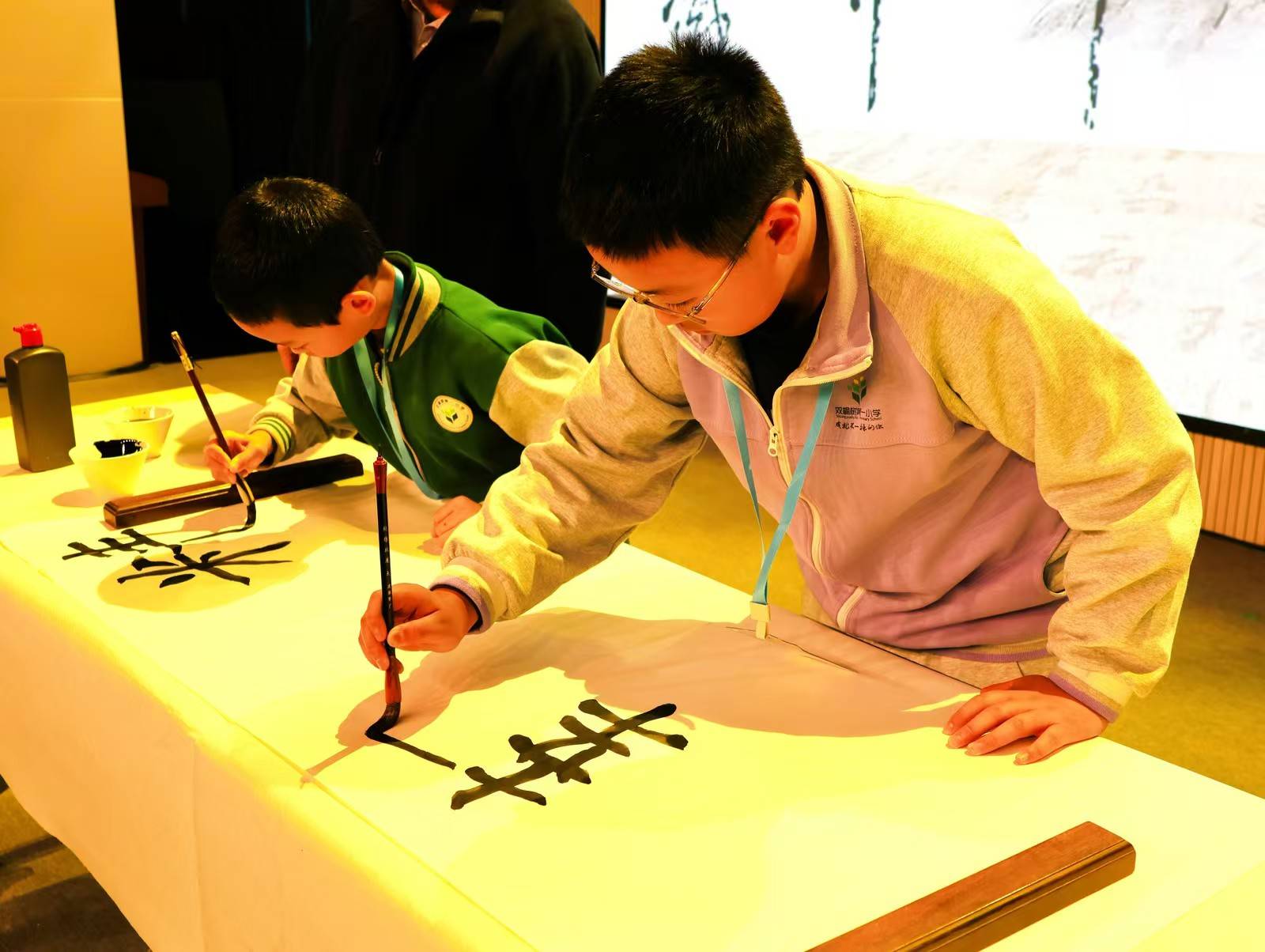 特别令人感动的是,老将军代表与海淀区双榆树第一小学的学生们同台挥毫《精忠报国》,笔墨间传递着家国情怀的代代相承。
