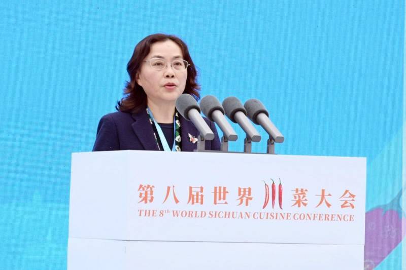 邢颖会长在致辞中说,川菜是中华饮食文化宝库中熠熠生辉的瑰宝。多年来,川菜与文化、旅游、科技深度融合,为产业发展开辟了“文化+科技+消费”的新赛道。《四川省促进川菜发展条例》的施行是川菜产业发展史上具有里程碑意义,不仅是对川菜传统技艺、文化基因的保护与传承,更将为产业发展确立规范、明晰边界,为中餐产业的法制化发展提供示范样本。他表示,世界川菜大会作为全球川菜人交流合作的重要平台,既是展示川菜魅力的窗口,更是凝聚产业共识、共谋发展的纽带。希望大家以本次大会为契机,深入交流,谋求合作,共商川菜产业高质量发展之策,共探国际国内市场拓展之道,共享产业创新升级之果。