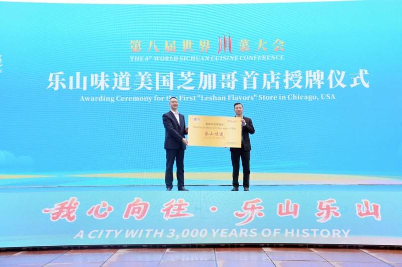 乐山市委常委雷建新为远在大洋彼岸的“美国芝加哥乐山味道首店”授牌,美中餐饮业联合会主席胡晓军接牌,标志着乐山美食向着国际市场迈出重要一步。
