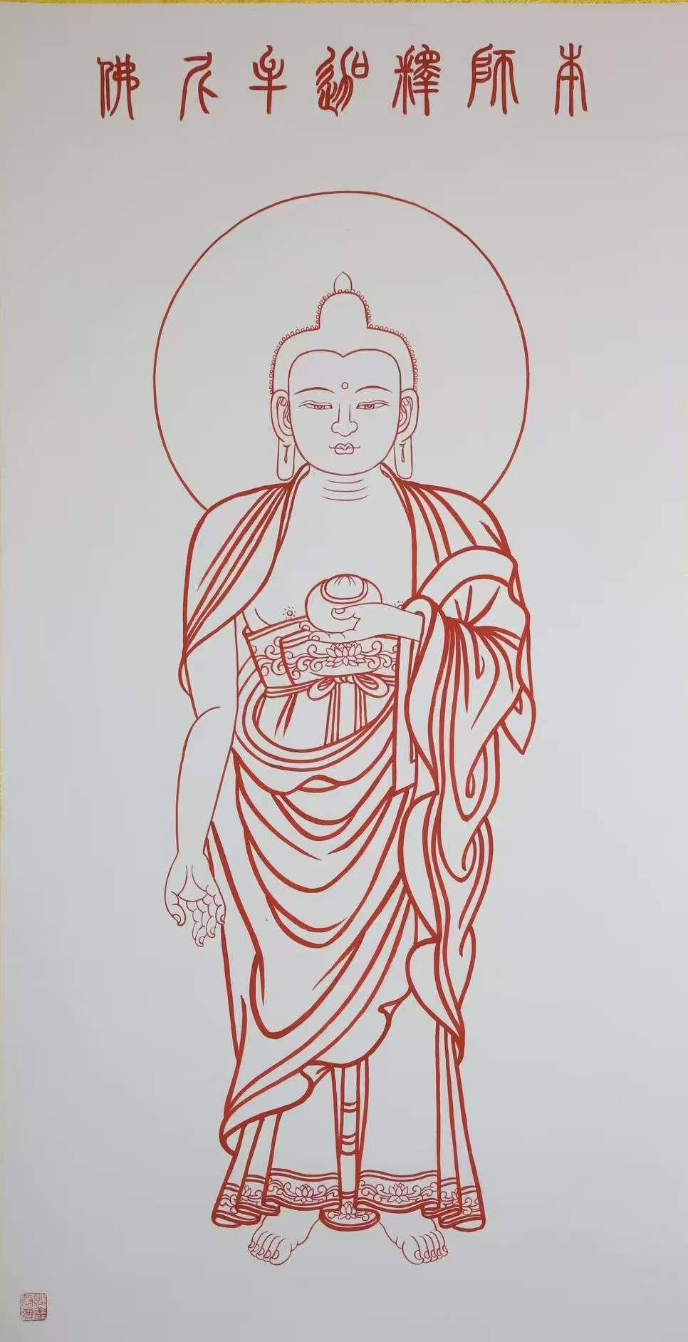 这份血脉里的文化基因,或许解释了她对古典技艺的天然亲近。但她的艺术之路更是一场主动选择的修行。上世纪90年代初,经缐先生一位佛学院弟子的引荐,她接触佛法并得白光法师赐法号妙善。“缐先生就是佛菩萨冥冥中的指引。”在她看来,早年仕女画训练中掌握的线条勾勒、肤色晕染等技法,都为后来钻研佛像绘画筑牢了根基。
