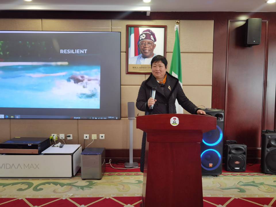 活动伊始,庄严而神圣的中尼两国国歌奏响,激昂的旋律如同一股强大的洪流,冲破了语言的障碍和文化的隔阂,让在场的每一个人都感受到了中尼两国人民对友谊的珍视和对未来的期许。尼日利亚驻华大使馆参赞奇耶格女士(Ms Chiege)迈着优雅而自信的步伐走上讲台,她的眼神中闪烁着智慧和热情,仿佛在诉说着中尼两国源远流长的友好历史。她深情地回顾了中尼两国在政治、经济、文化等各个领域的合作历程,那些携手共进、互帮互助的温暖瞬间如同电影般在人们眼前浮现。她强调,文化互鉴是增进两国人民心灵沟通的神奇钥匙,它能够打破文化的壁垒,让两国人民在相互理解和尊重的基础上建立起深厚的友谊;而经贸合作则是推动双边关系持续发展的强大引擎,为两国带来了实实在在的利益和发展机遇。奇耶格女士还坚定地表示,尼日利亚驻华大使馆将一如既往地为两国在各领域的交流与合作提供全方位的支持和保障,凝聚更广泛的共识,开拓更广阔的前景,让中尼友谊之树在岁月的长河中茁壮成长,枝繁叶茂。